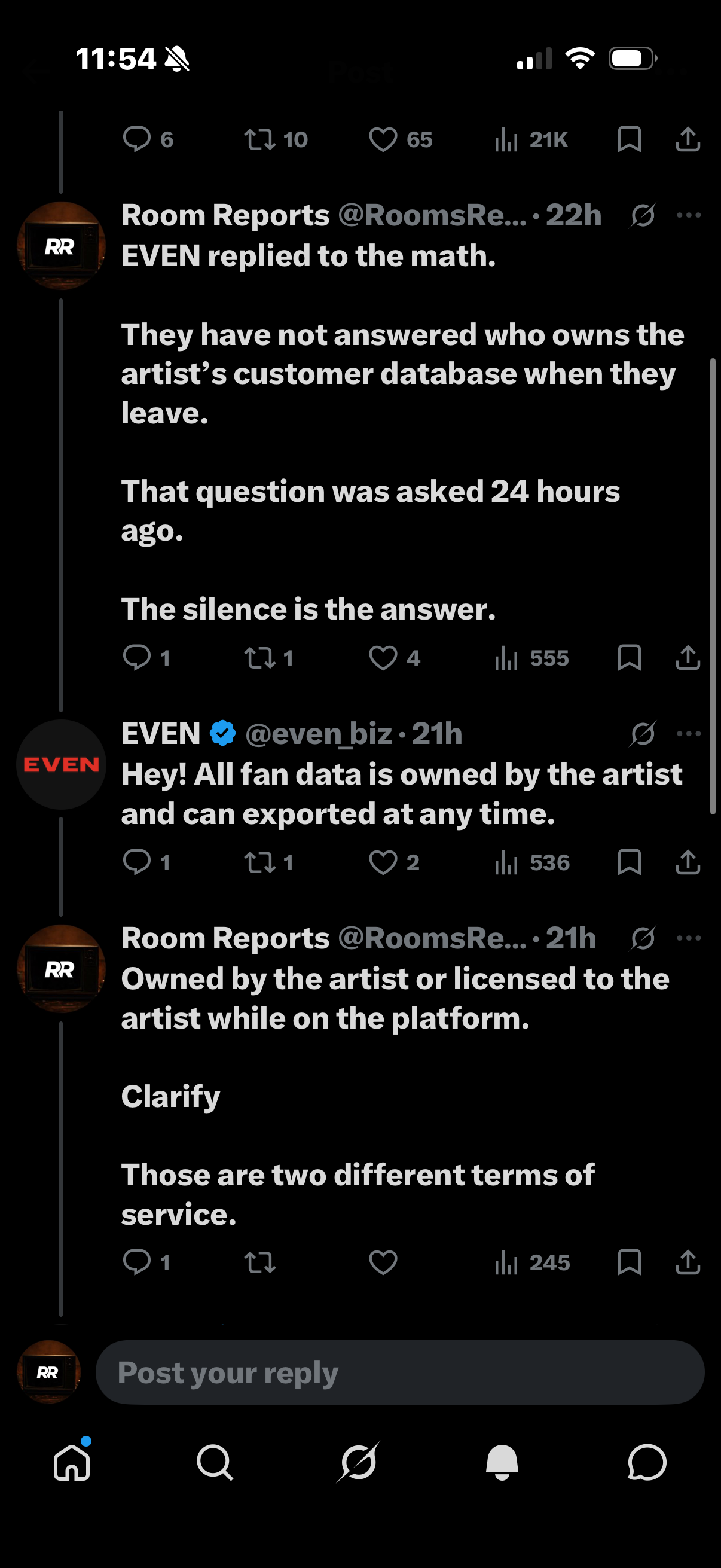 What remains unresolved is what EVEN itself retains on the platform side after an artist's departure. That question was asked. It remains open.
